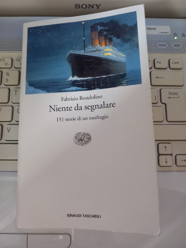 Questo piccolo spaccato, reale, è contenuto nel libro di Fabrizio Rondolino “Niente da segnalare” in cui l’autore raccoglie e ci restituisce 151 storie, 151 vite, 151 fra naufraghi, morti e dispersi, 151 esseri umani uomini – donne – bambini, di prima come di seconda e terza classe che hanno vissuto il dramma più famoso del 1900, ovvero il naufragio del Titanic. Aristocratici, povera gente in cerca di fortuna al di la dell’oceano, giovani spose con figli che dovevano raggiungere il marito partito anni prima; marconisti, fuochisti, camerieri, storie di chi ha perso la nave e di chi, al contrario, si è imbarcato all’ultimo minuto.