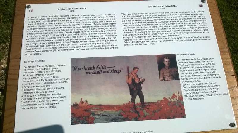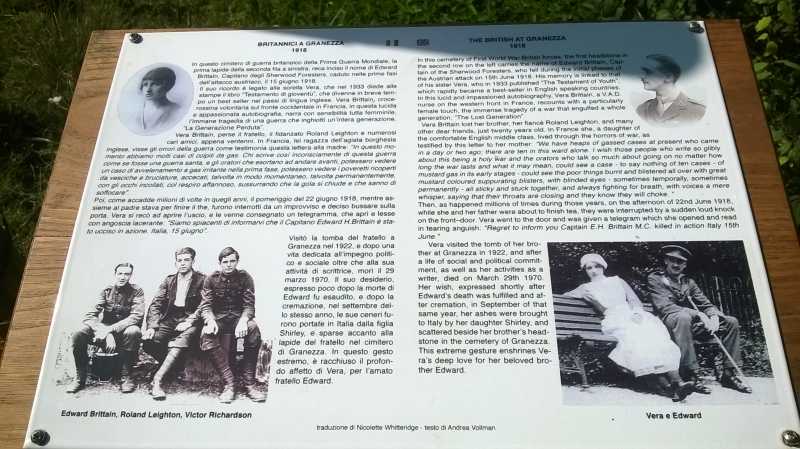 In qualche modo mi tocca anche nel personale poiché parla del mio paese, Bassano del Grappa, e dell'altopiano di Asiago (a poca distanza) in cui perde la vita il suo unico fratello. Proprio l'estate appena passata ho fatto una sorta di pellegrinaggio a questo piccolo cimitero britannico di Granezza, sulla tomba di quel fratello così amato che Vera stessa ha fatto spargere le sue ceneri dopo la morte per rimanergli per sempre accanto. Un luogo pieno di verde e di silenzio, a poca distanza dai resti delle trincee in cui si spera che nessun uomo debba più perdere la vita.