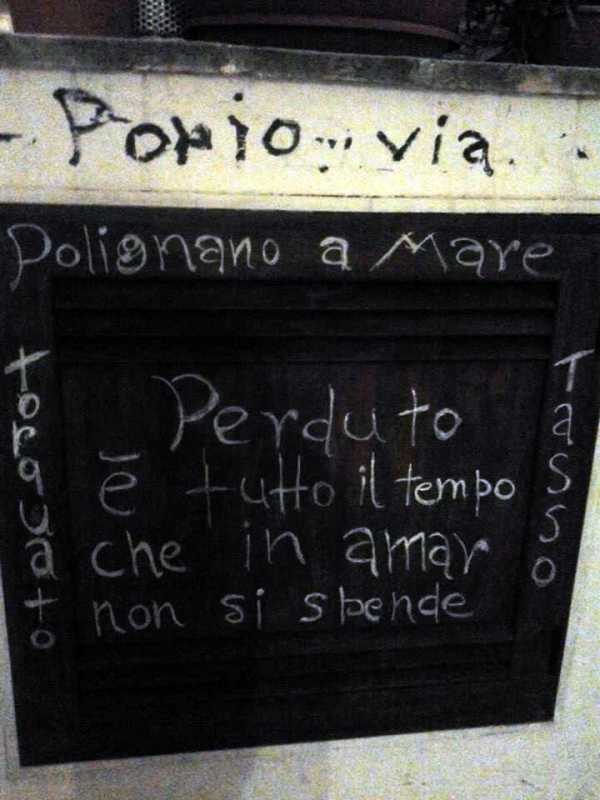 Questa foto risale a Settembre dell'anno scorso e, passeggiando fra i vicoli dell'incantevole Polignano a mare (BA), mi sono imbattuto in questa citazione di Torquato tasso scritta su questa specie di botola. ;)
