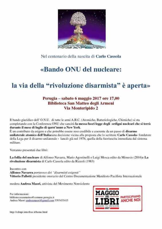 Vi invito alla presentazione di due libri sul tema del disarmo nucleare e della dichiarazione ONU che sarà firmata il prossimo giugno.