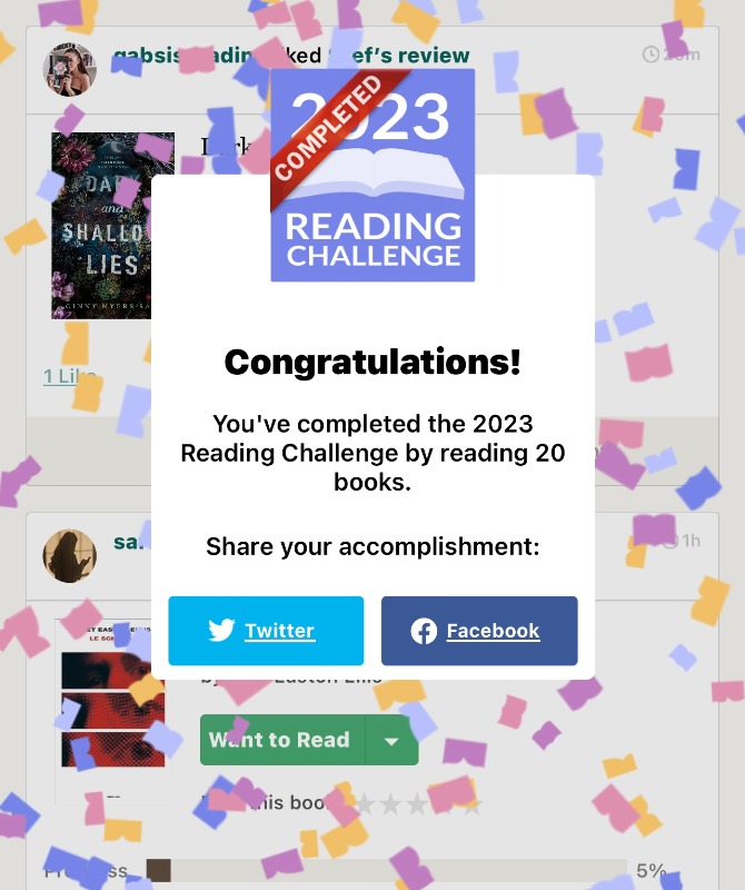 E' pur vero che mi ero data degli obiettivi molto fattibili, un po' perché non ero certa di ritornare pienamente ai miei standard di lettura dopo varie vicende personali e un po' perché volevo essere sicura di riuscire a raggiungerli in modo da gasarmi ed essere soddisfatta (cosa che effettivamente è accaduta!).